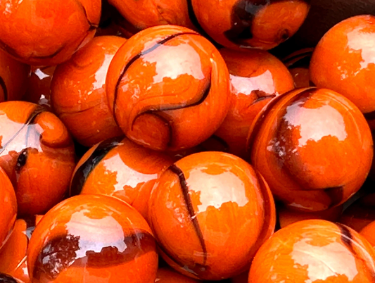 (Lot of 10) BENGAL TIGER Orange/Black Swirl Glass Marbles 22mm (7/8 inch) SHOOTER Taw Lot