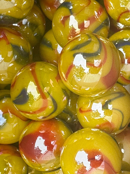 Lot of 10 TROPICANA Yellow/Red Glass Marbles 25mm (1 inch) shooter