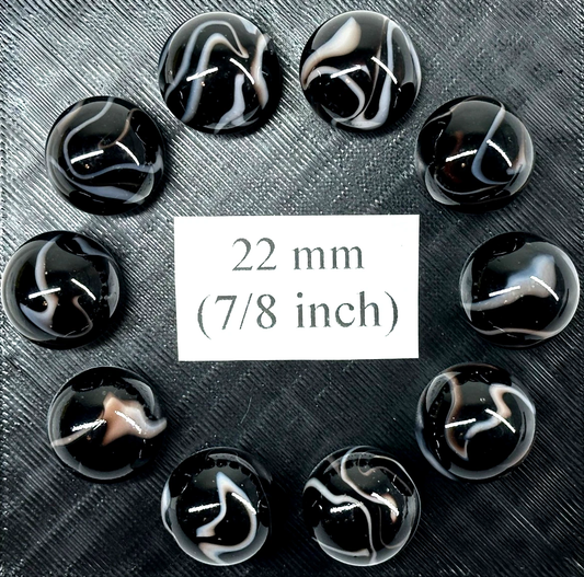 (Lot of 10) ZEBRA Black/White Swirl Glass Marbles 22mm (7/8 inch) SHOOTER Taw Lot