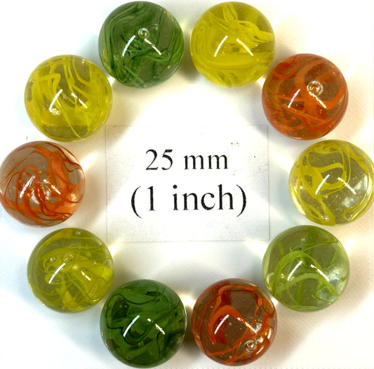 Spaghetti Red/Green/Yellow random color mix Glass Marbles 25mm (1 inch) SHOOTER (Lot of 10)