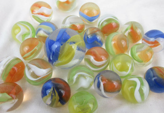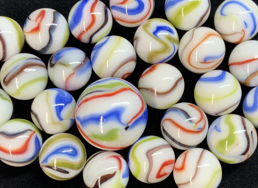 25 Glass Marbles TREE FROG White Red Blue Green Brown Game Pack Shooter Swirl