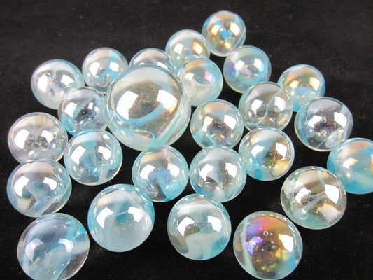 25 Glass Marbles ICE QUEEN Blue/White Clear Iridescent game pack Shooter