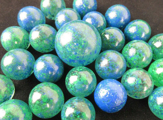 25 Glass Marbles EARTH Green/Blue Speckled game pack Shooter