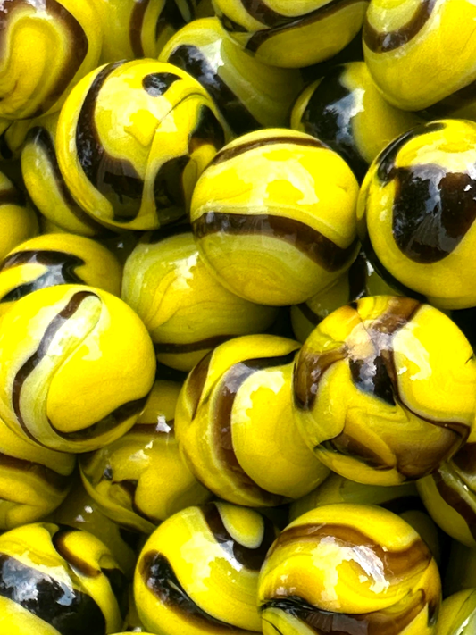 (Lot of 5) BUMBLE BEE Yellow/Black Swirl Glass Marbles 22mm (7/8 inch) SHOOTER Taw Lot
