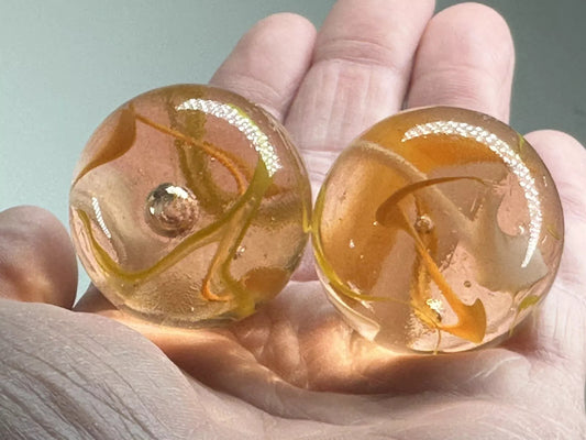 2 BOULDERS 35mm FIrefly Glass Marbles