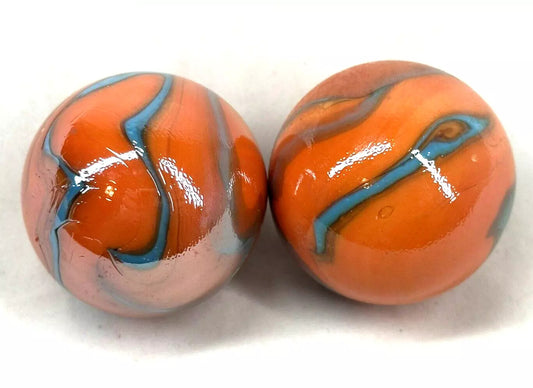 (Lot of 5) VALKYRIE Orange/Blue Iridescent Glass Marbles 22mm (7/8 inch) SHOOTER Taw Lot (Copy)