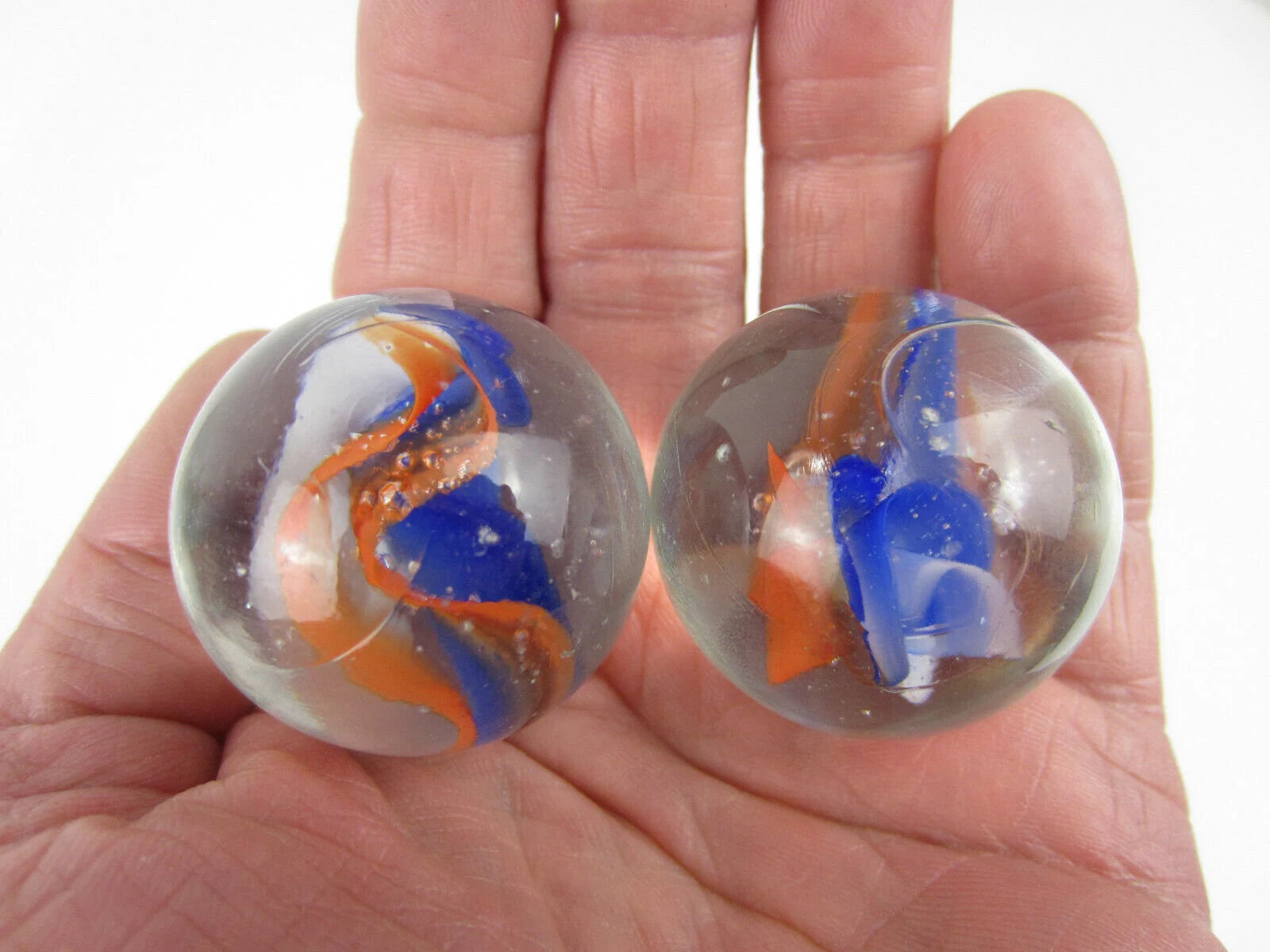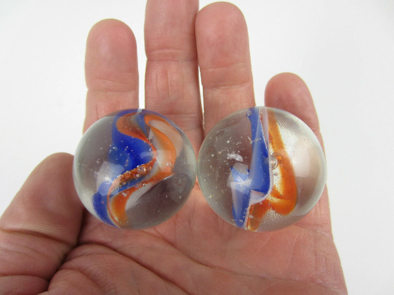 Lot includes 2 marbles, each is 1 3/8" (35mm) in size. These beautiful Red, White & Blue Cat's Eye marbles are clear glass with 6 vanes of color in the center (2 each of red, white and blue). These marbles are new and in mint condition. The stock photos are a representation of what you will receive, each marble is unique and will vary slightly from photos.(All marbles are unique, your set may not look exactly like the one pictured)