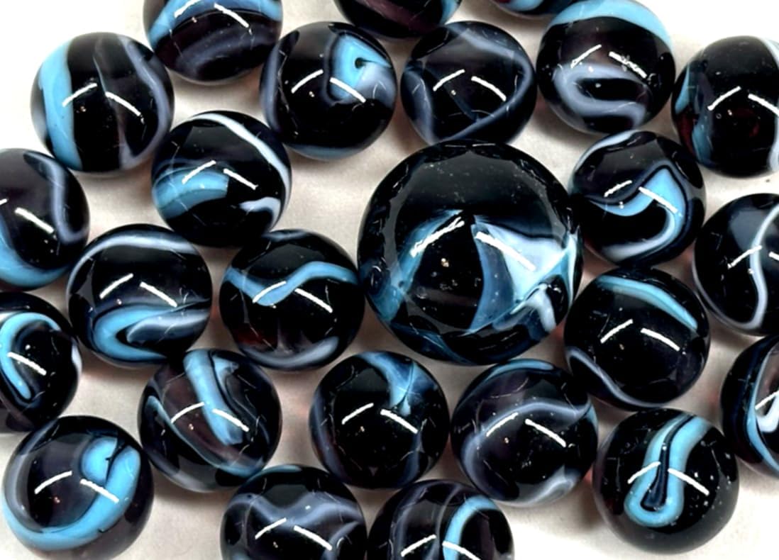 25 Glass Marbles ASTRONAUT Purple/Blue game vtg style Shooter Taws Mib Swirl