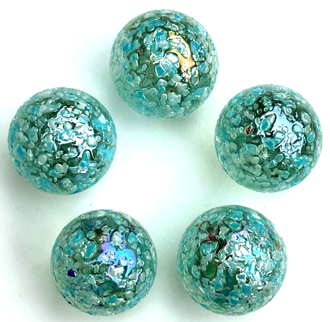 SNOWFLAKE Clear/Blue Confetti Swirl Glass Marbles 22mm (7/8 inch) SHOOTER Taw Lot of 5. Great size for use with large custom wooden Aggravation game boards.
