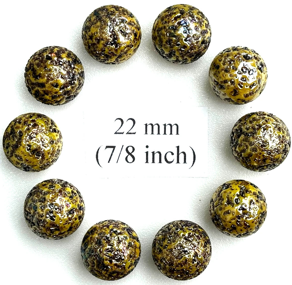 (Lot of 10) SPINOSAURUS Yellow/brown Confetti Swirl Glass Marbles 22mm (7/8 inch) SHOOTER Taw Lot