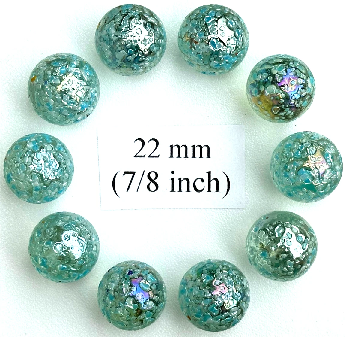(Lot of10) SNOWFLAKE Clear/Blue Confetti Swirl Glass Marbles 22mm (7/8 inch) SHOOTER Taw Lot
