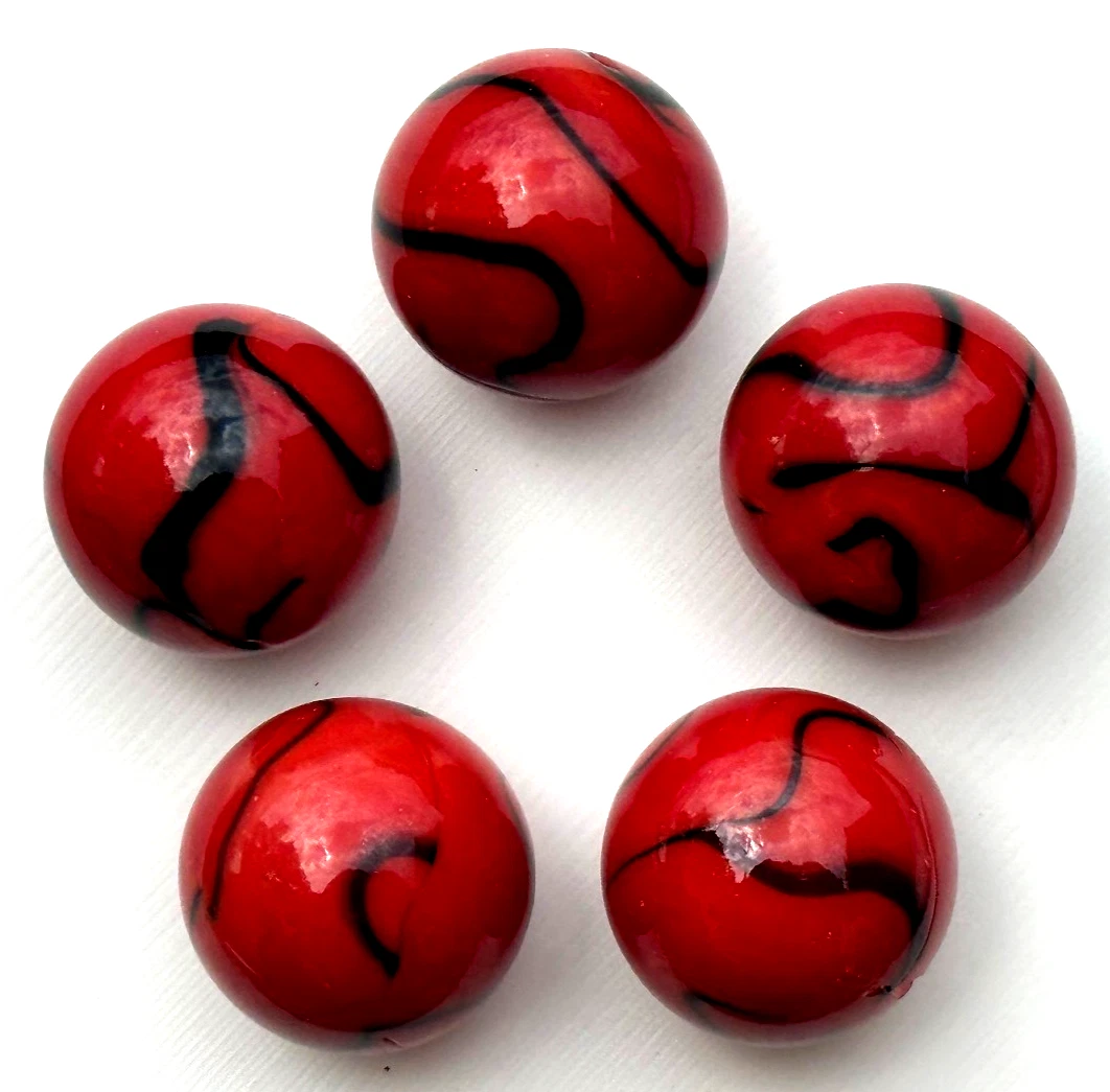 (Lot of 5) LADY BUG Red/Black Swirl Glass Marbles 22mm (7/8 inch) SHOOTER Taw Lot
